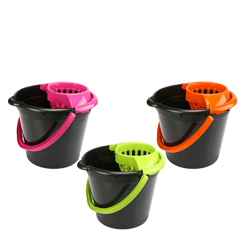 Wysokiej jakości wiadro z wyciskaczem o pojemności 12l w kolorze czarnym.