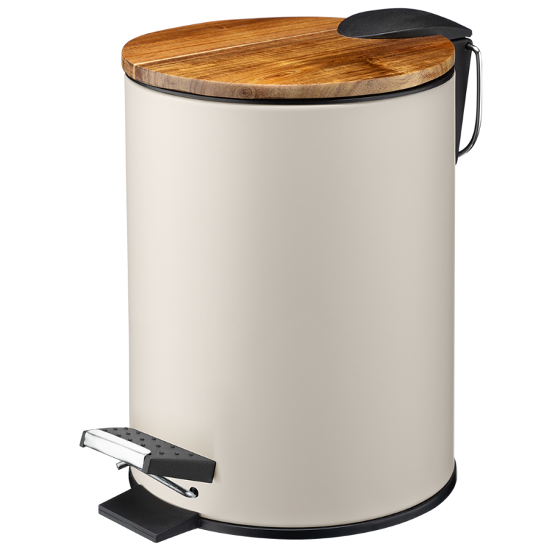 Kremowy kosz łazienkowy AKAMO to prawdziwy must-have dla miłośników jasnych i przytulnych wnętrz. Jest wykonany ze stali nierdzewnej i pokryty trwałą, proszkową powłoką, łączy delikatność kolorów z niezwykłą wytrzymałością. Jego naturalny charakter podkreśla drewniana pokrywa z akacji, która dodaje wnętrzu ciepła i stylu. Dzięki wolnoopadającej pokrywie korzystanie z kosza jest bezgłośne, a wyciągany plastikowy wkład z uchwytem