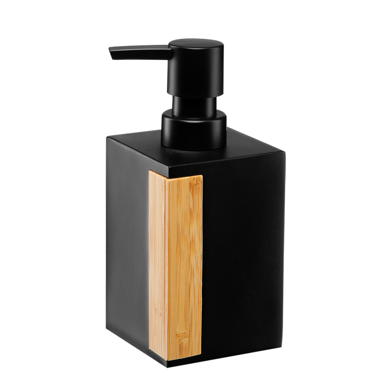 - Dozownik na mydło wykonany z połączenia poliresinu, bambusa i tworzywa sztucznego