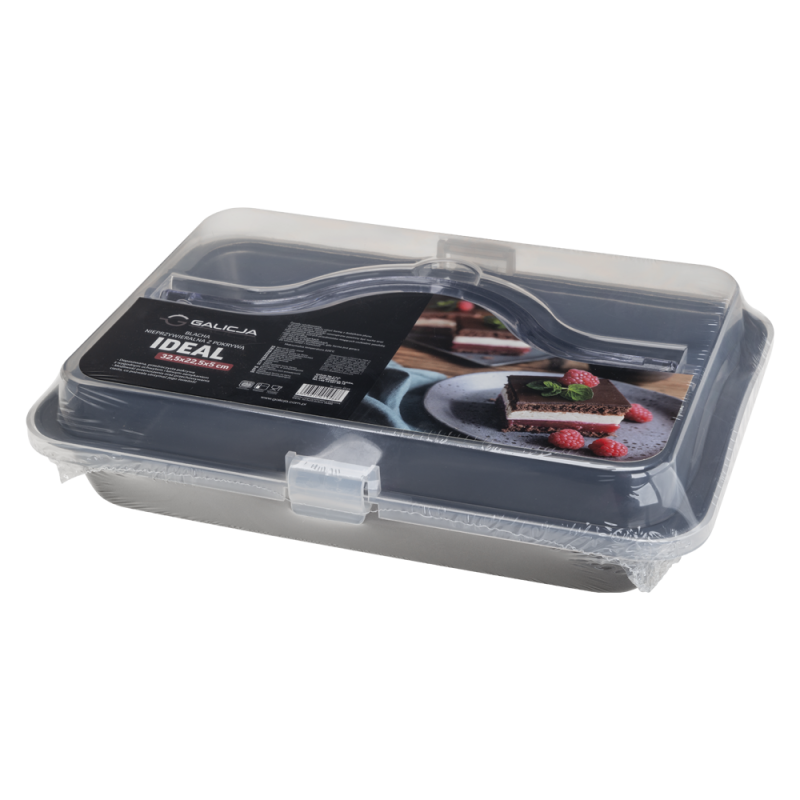 Dopasowana, przeźroczysta pokrywa z uchwytem, który umożliwia wygodne przenoszenie, Łatwe zamykanie, Maksymalna temperatura pieczenia - 220 st. C, Nie używać w mikrofalówkach i zmywarkach Zasady użytkowania: