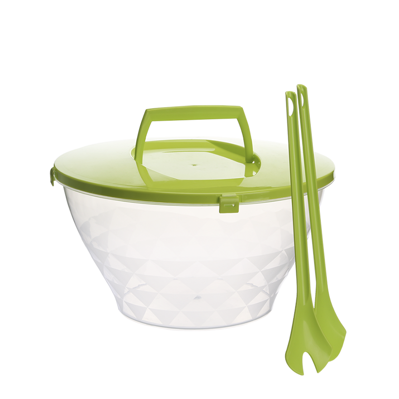 Pokrywa zamykana na cztery zatrzaski, wyposażona w uchwyt umożliwiający wygodne transportowanie miski.