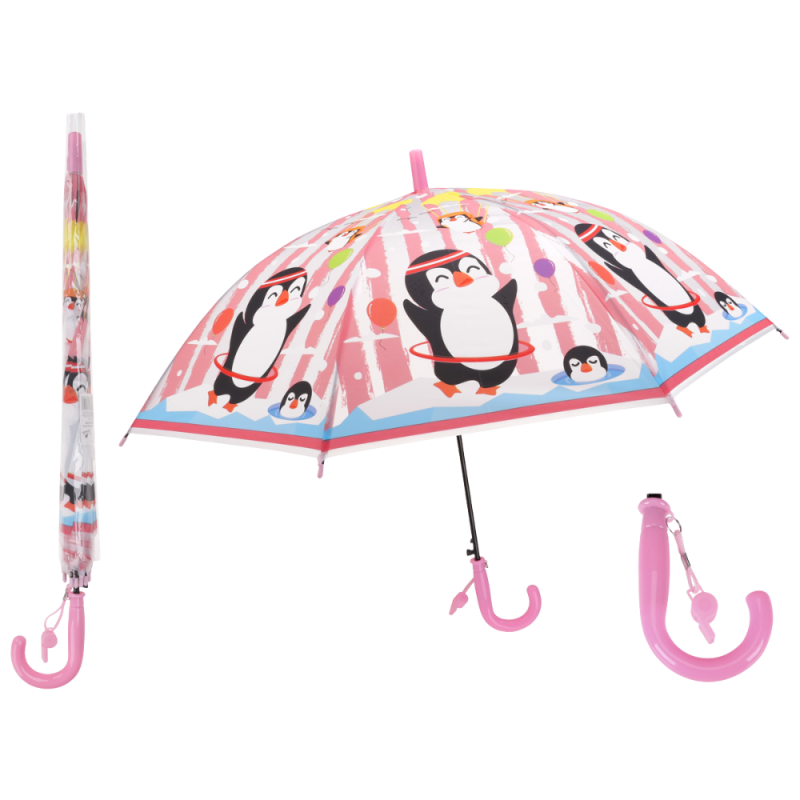 Dodatkowo parasol wyposażony jest w gwizdek, który zapewni dodatkową zabawę, a także zwiększy bezpieczeństwo dziecka.