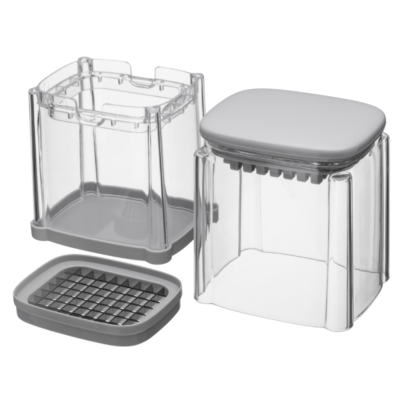 Ostrze idealne do krojenia ziemniaków, innych warzyw i owoców w słupki i kostkę, Produkt składa się z: pokrywy do dwuręcznego nacisku, ostrza, pojemnika na pokrojone warzywa lub owoce, Antypoślizgowa (zdejmowana) pokrywa, Przy użyciu ostrza zachować ostrożność, możliwość skaleczenia