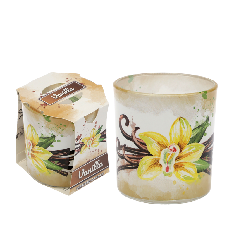 Materiał wykonania: parafina, zapach, aluminium, knot, szklanka.