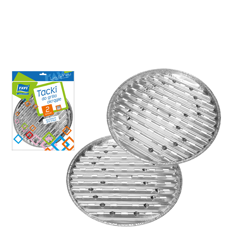 Okrągłe tacki aluminiowe jednorazowego użytku są niezbędne podczas przygotowywania dań z grilla. Nie należy ich używać do produktów spożywczych o charakterze kwaśnym.