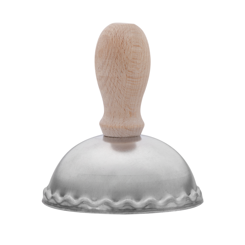 Drewniana rączka ułatwia wykrawanie ciasta i proces przygotowania pierogów