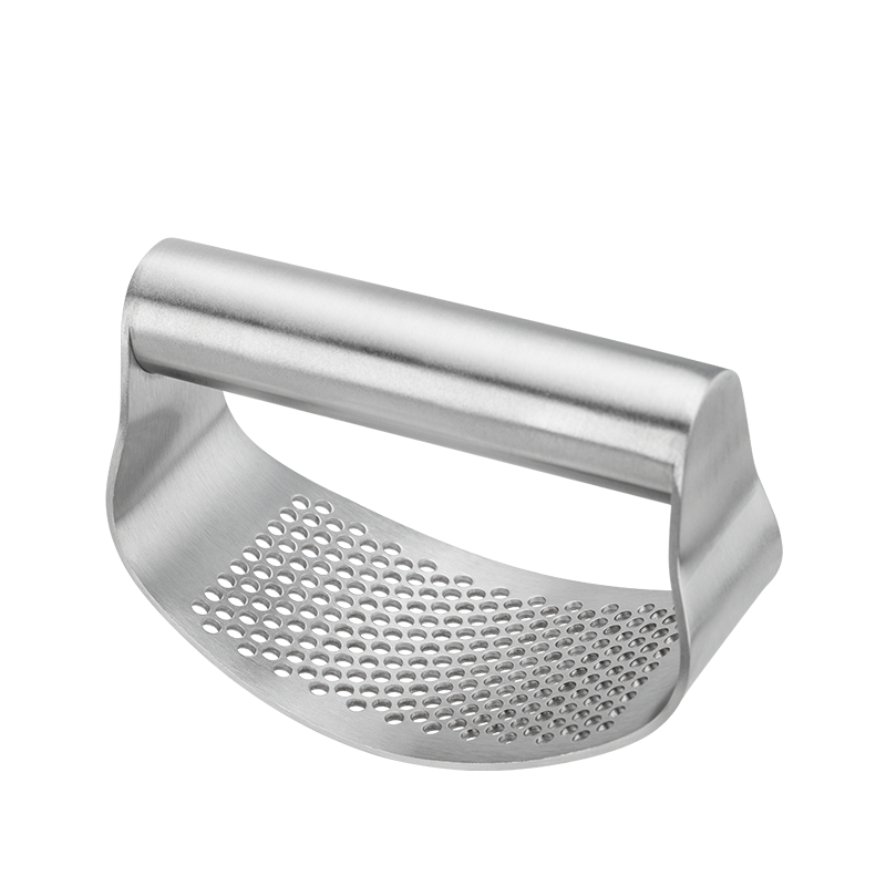 Posiada wygodny uchwyt, wystarczy położyć ząbek czosnku na desce i rozgnieść go za pomocą praski