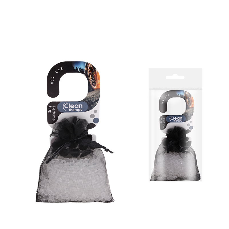 Uniwersalna zawieszka w postaci delikatnych kryształków nasączonych aromatycznym ekstraktem, zamkniętych w kolorowym woreczku z organzy. Woreczek zapachowy jest elementem oferty produkcyjnej firmy Ravi przeznaczonym do stosowania jako odświeżacz do damskich torebek, plecaków, szaf, szuflad oraz garderoby. New Car to intensywny zapach wnętrza nowego samochodu.