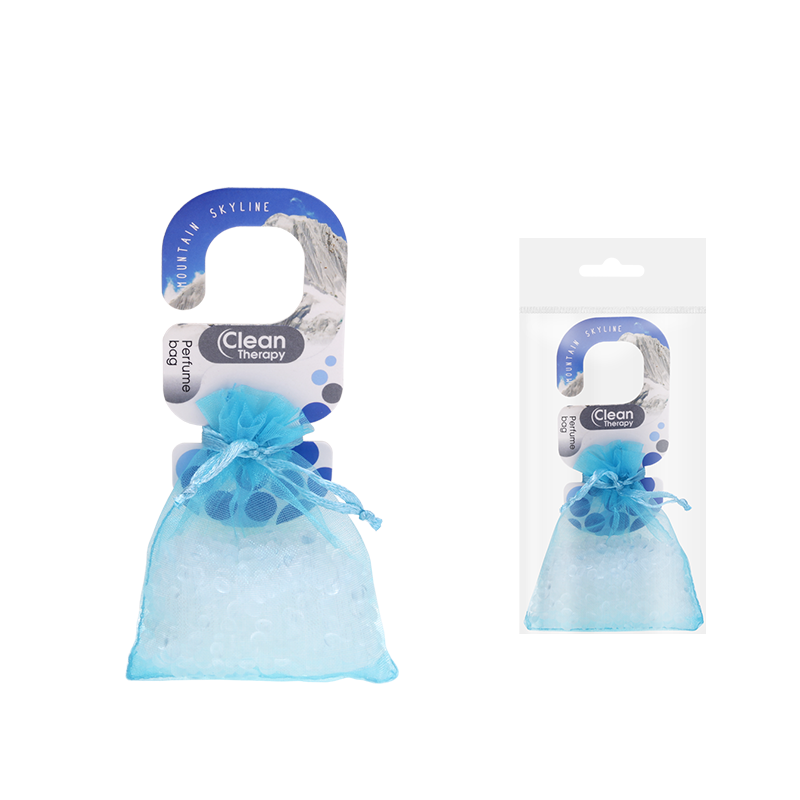 Uniwersalna zawieszka w postaci delikatnych kryształków nasączonych aromatycznym ekstraktem, zamkniętych w kolorowym woreczku z organzy. Woreczek zapachowy jest elementem oferty produkcyjnej firmy Ravi przeznaczonym do stosowania jako odświeżacz do damskich torebek, plecaków, szaf, szuflad oraz garderoby. Mountain Skyline to rześki zapach krystalicznie czystego, górskiego powietrza.