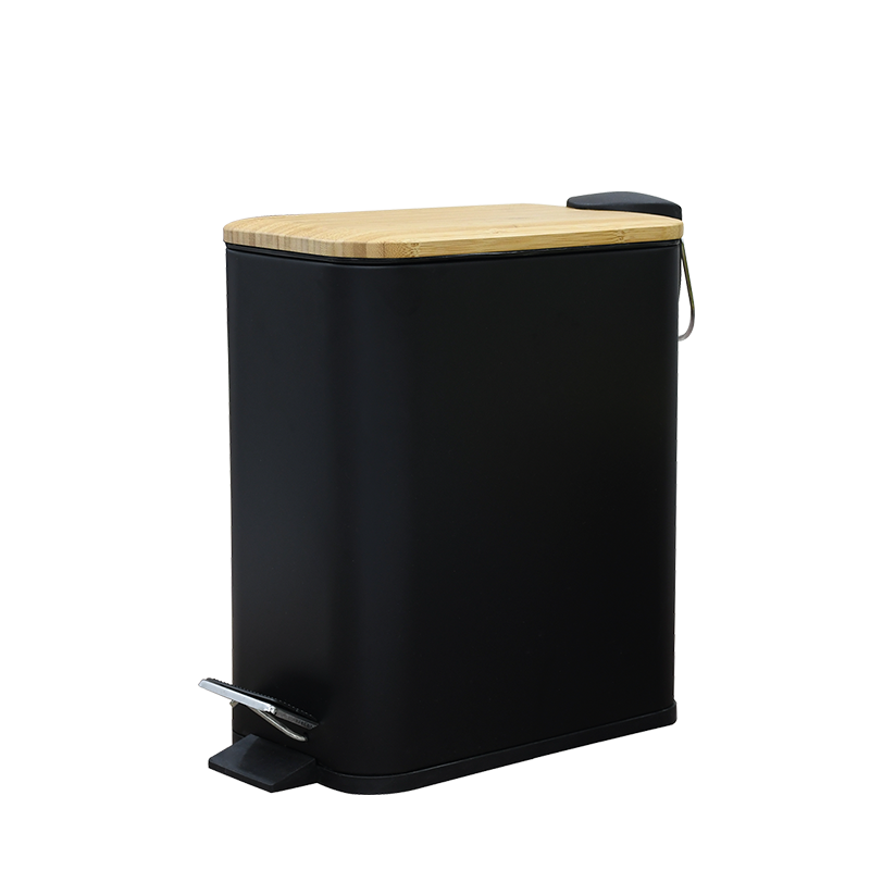Kosz na śmieci - do łazienki, sypialni lub domowego biura - wcale nie musi być nudny. Prezentowany kosz na śmieci VERTO jest stylową propozycją wyposażenia wnętrza, która jest niezwykle praktycznym zastosowaniem dla małych przestrzeni. Kosz został wykonany z połączenia prostokątnej, metalowej obudowy oraz klapy wykonanej z drewna bambusowego. Posiada wewnętrzny, wyjmowany kubeł z uchwytem, ułatwiający opróżnianie z zawartości. Dużym atutem kosza jest jego prostokątny kształt - szerokość 14