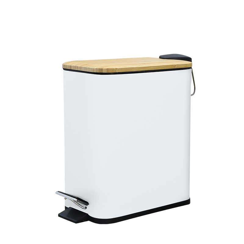 Kosz na śmieci - do łazienki, sypialni lub domowego biura - wcale nie musi być nudny. Prezentowany kosz na śmieci VERTO jest stylową propozycją wyposażenia wnętrza, która jest niezwykle praktycznym zastosowaniem dla małych przestrzeni. Kosz został wykonany z połączenia prostokątnej, metalowej obudowy oraz klapy wykonanej z drewna bambusowego. Posiada wewnętrzny, wyjmowany kubeł z uchwytem, ułatwiający opróżnianie z zawartości. Dużym atutem kosza jest jego prostokątny kształt - szerokość 14 cm pozwala na umieszczenie kosza w niewielkich przestrzeniach i wnękach, do których standardowy kosz na śmieci się nie zmieści. Kosz VERTO dodatkowo posiada plastikową podstawę zapobiegającą rysowaniu podłogi.