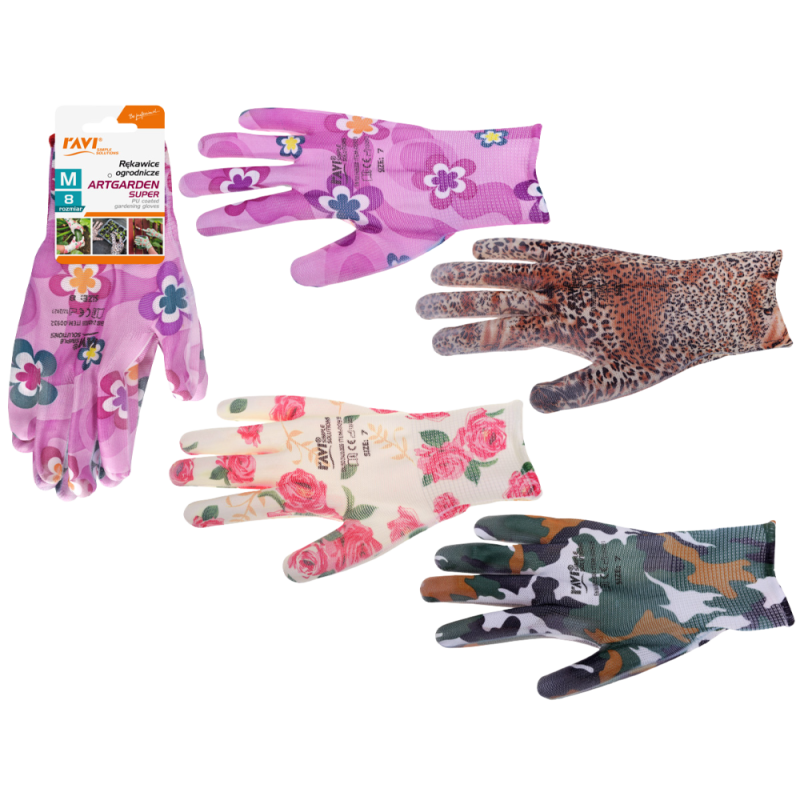 Wykonane z poliestru rękawice pokryte dodatkową warstwą ochronną z poliuretanu doskonale zabezpieczają dłonie przed zabrudzeniem i przypadkowymi skaleczeniami podczas przesadzania roślin doniczkowych oraz prac ogrodniczych.