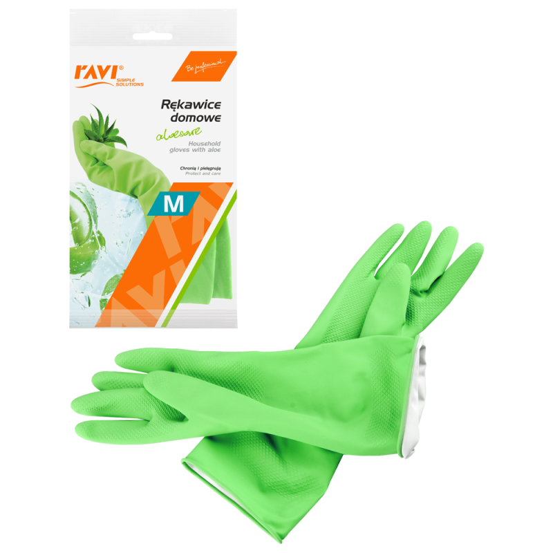Wykonane z naturalnego lateksu rękawice doskonale chronią dłonie przed różnego typu zanieczyszczeniami a zwłaszcza działaniem chemicznych środków czystości. Ich wyjątkowym atutem jest wewnętrzna warstwa, która została wzbogacona ekstraktem z aloesu, dzięki czemu rękawice mają również funkcje pielęgnacyjną. Delikatny aloesowy aromat sprawia, że rękawice nie wydzielają charakterystycznego zapachu gumy.