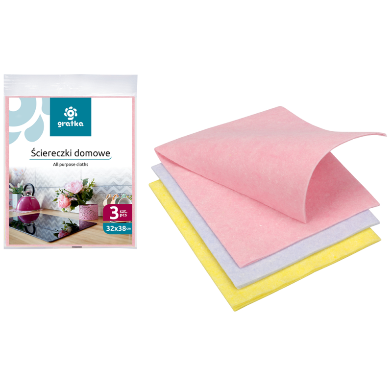 - Skład: 20% colored viskose, 50% white viscise, 10% PES, 20% PP