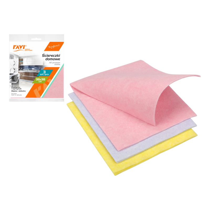 - Skład: 20% colored viskose, 50% white viscise, 10% PES, 20% PP