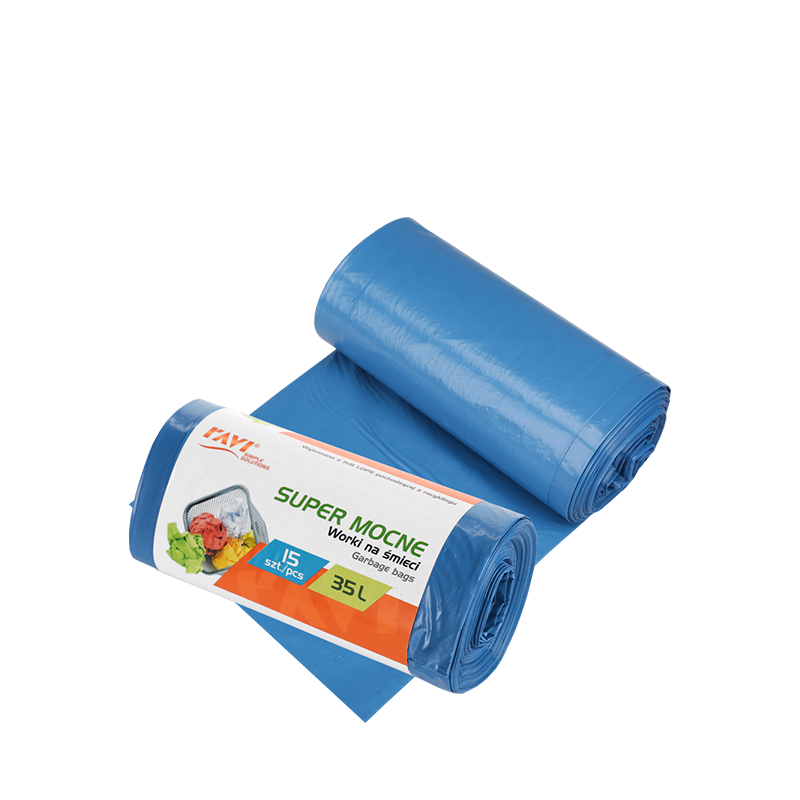 Prezentowane worki na odpady cechują się dużą wytrzymałością - są super mocne i odporne na rozdzieranie się. Wykonano je z folii LDPE pochodzącej z recyklingu. Ich pojemność 35L jest idealnym rozmiarem na odpady generowane w domu. Worki są w niebieskim kolorze. Worki zostały wyprodukowane w Polsce.