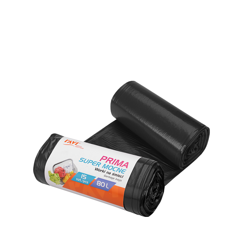 Worki na odpady linii PRIMA cechują się dużą wytrzymałością - są super mocne i odporne na rozdzieranie się. Wykonano je z folii LDPE pochodzącej z recyklingu. Ich pojemność 80L jest idealnym rozmiarem na odpady generowane w domu. Worki są w klasycznym, czarnym kolorze. Worki PRIMA zostały wyprodukowane w Polsce.